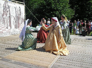 Основные танцевальные направления той эпохи, это бассдансы и балли. Бассдансы — это медленные, очень плавные, торжественные придворные танцы с замысловатым рисунком, которые исполнялись и на рыцарских турнирах и на торжествах. Балли — живые, стремительные танцы, которые так же танцевались на балах родовитой молодежью. Третье танцевальное направление, не основное в изучении, но любимое нами — это бранли. В Европе бранли были известны с XII века. Их танцевали все сословия, и крестьяне на деревенских праздниках, и высокородные господа в замках. Бранли состоят из ритмичных, простых для исполнения движений, которые исполняются либо по кругу, либо цепочкой. Эти танцы настолько простые в исполнении, что их может быстро и легко изучить каждый.